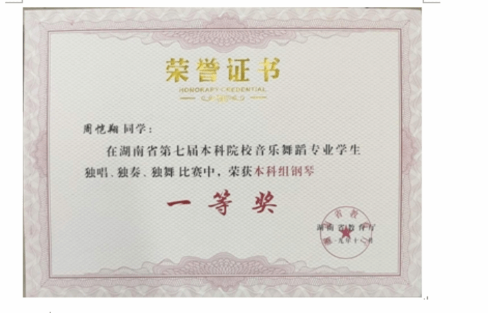 近日,湖南省教育厅第七届“三独”比赛获奖名单进行公布,我校音乐学院参赛的学子取得了优异的成绩,在独唱、独奏、独舞比赛中均获得了奖项。