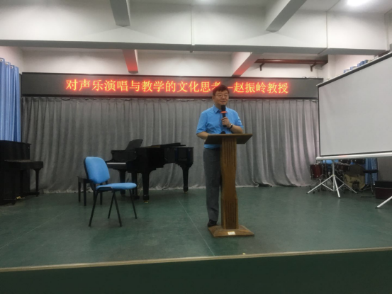 赵振岭教授分享了他在天津音乐学院声乐教学方面的经验与体会;提出了文化自信的重要性,要在声乐学习中运用科学的发声方法唱好中国歌曲。随后赵振岭教授对我院师生的实践演唱给予了指导。此次讲座师生们感到受益匪浅,对我院声乐教学、学科建设等工作具有重要的指导意义。