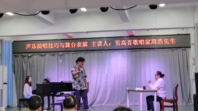 2025年4月8日下午16点,旅澳男高音歌唱家周浩莅临我院,带来一场关于声乐演唱技巧与舞台表演的精彩讲座。