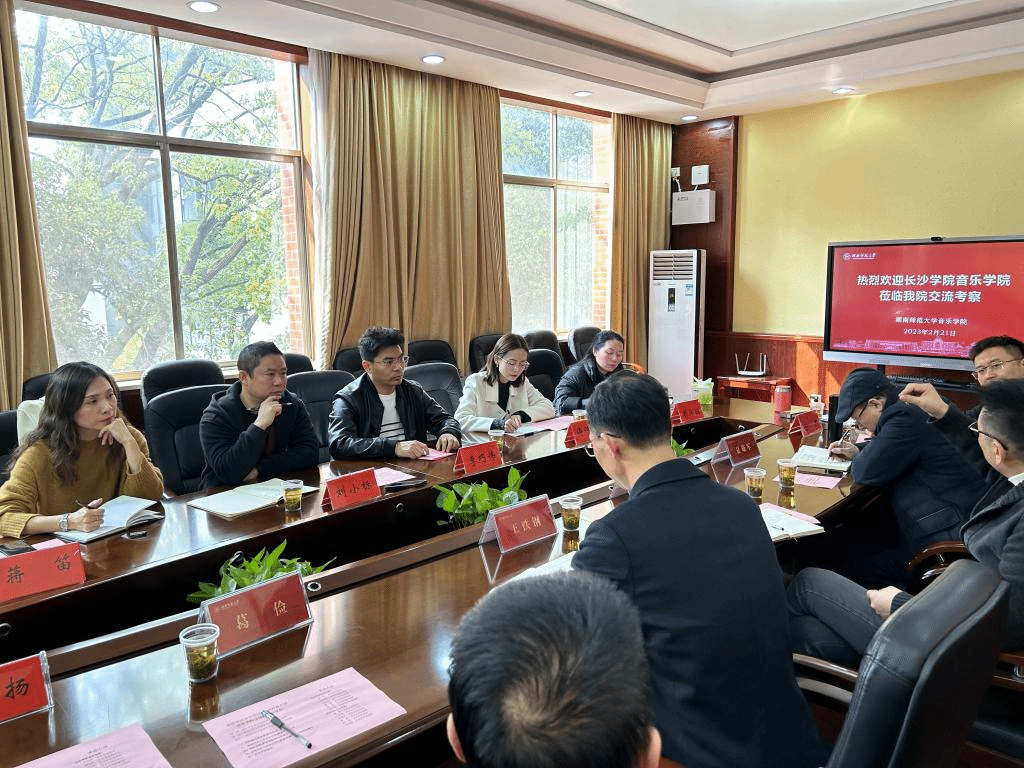 为了加强学科建设,2023年2月21日,在我院李巧伟院长的带领下,党总支副书记傅诗贻、副院长刘小标、教务秘书彭子珊、蒋笛副教授一行5人赴湖南师范大学音乐学院开展考察和交流。湖南师范大学音乐学院党委书记王铁钢、院长廖勇、副院长夏雄军、声乐系主任陈世扬、器乐系主任陈果、葛俭教授、院办夏娟主任参加了本次交流活动。廖勇院长强调了办学特色的重要性,阐述了对综合性大学音乐学院未来办学趋势进行正确预判的必要性,介绍了近年来湖南师范大学音乐学院的办学方向、改革思路和成功经验。夏雄军副院长就专业评估、国家一流本科专业建设、如何促进教师科研能力等问题提出了诸多宝贵建议,同时认为两校的音乐学院在办学思路上有着一些共同之处,可以在多方面加强合作和交流。李巧伟院长对湖南师范大学音乐学院的热情接待表示感谢,并介绍了我院的办学历史、办学思路与特色,希望通过此次交流,双方能在学科、专业建设方面相互促进,共同提高。随后,双方与会领导和教师结合各自工作展开了热烈讨论和深入交流。、