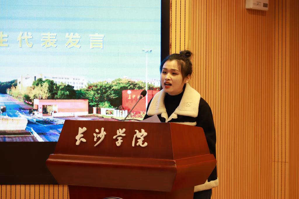 毕业生代表尹雨晴进行发言。她表示,将按照学院的相关要求,积极做好毕业求职准备工作,努力提升自己,争取早日找到合适的工作,在工作岗位上实现自己的人生价值。