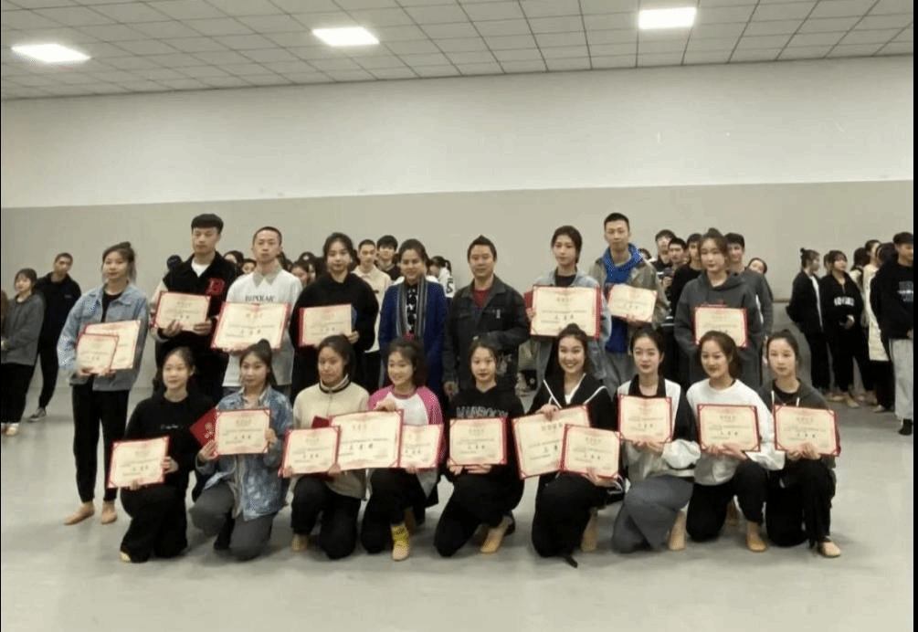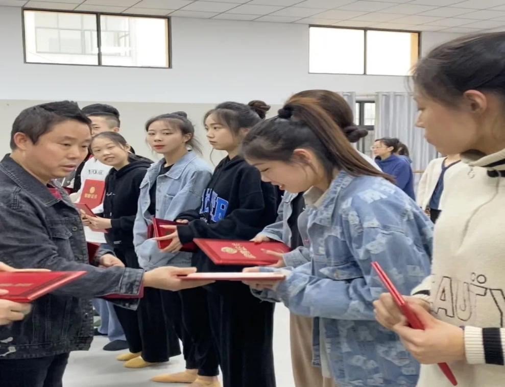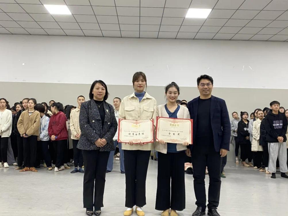 参与此次颁奖典礼的领导有,音乐学院党总支书记陈思玥、院长李巧伟、副院长谢萍、副院长刘小标。典礼过程由青年舞蹈教师王瑞洁主持,第一部分,介绍此次比赛旨在展示专业技能、培养思想道德精神、宣传美育、弘扬民族文化。典礼第二部分为颁奖环节,由主持人宣读获奖名单,各位领导进行颁奖、合影留念。此次比赛获奖名额共四十四个,其中一等奖七个、二等奖十四个、三等奖二十一个,全能奖一个、优秀班集体一个。典礼进行第三部分,领导致辞。李院长对现阶段舞蹈学专业取得的成绩表示认可,同时也鼓励同学们再接再厉,冲击更高的赛事、更好的奖项。最后,李院长与陈书记在关心学生学业之余,也不忘提醒学生们劳逸结合,注重身心健康发展。