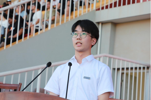 电子信息与电气工程学院吴鹏博士作为教师代表发言。他向全体新生阐述了大学生活充满无限的挑战和可能,希望新生能立足长远做好人生规划,学深、学精、脚踏实地,攻坚克难,做到德智与身心全面健康发展。