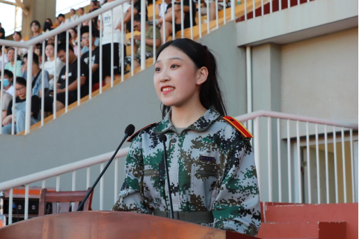 马栏山新媒体学院2021级新生向宇轩发言。她向大家提出三点倡议:一要志存高远,树立远大理想。二要严于律己,锤炼高尚品格。三要持之以恒,练就过硬本领。