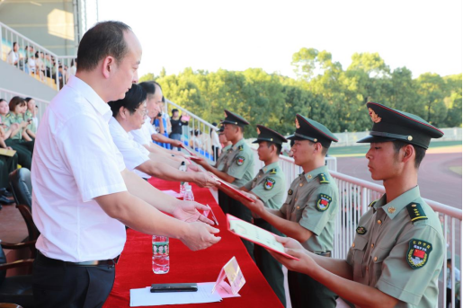 曾广胜代表学校宣读了《长沙学院关于表彰2021年军训先进集体、先进个人的决定》,出席典礼的领导和嘉宾对获奖的先进集体和个人进行颁奖。
