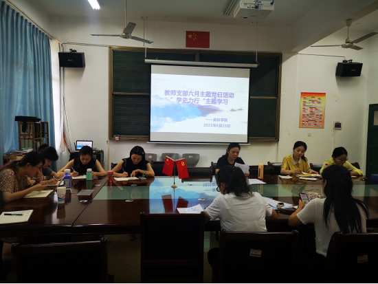 6月15日下午,音乐学院党总支在音乐楼105会议室围绕“学史力行”主题开展党史学习教育第四次主题学习,党总支书记陈滨滨主持。