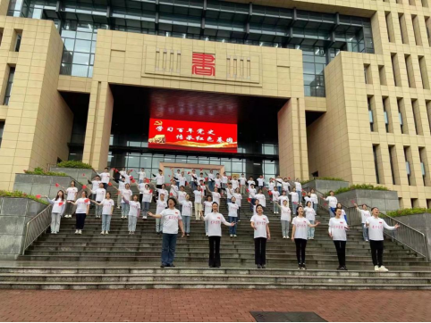 在学校拍摄地校门口、图书馆、九龙柱、音乐广场等地标建筑前的拍摄,六位教师党员带领学生们依然不畏风雨,以饱满的情绪、深情的歌唱向党传递着全校师生的心声。