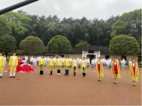 在开慧故居,在党员教师带领下,师生们冒着风雨以饱满的热情用歌声、用舞蹈表达对先烈的崇敬与缅怀,表达对党的无限热爱与忠诚,一遍遍演唱的歌词“我迈着那坚定的脚步,走在你身后,为你捧出红火的青春,一路去追求,为你抛洒滚烫的热血,奉献我所有 ” 也一次次震撼着所有演职人员的心灵。嘹亮的歌声响彻开慧故居,唱出了师生们对党的赤诚之心,激发了师生们为党奋斗的无限动力。