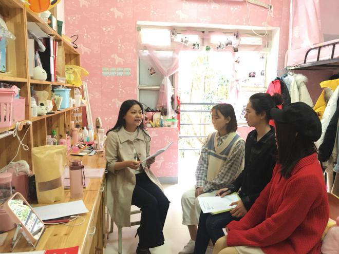 老师们深入宿舍,学生们通过谈室友、谈自己,发现各自的优点,将这些优点和行为外化为自己行动的自觉,营造一种互相帮助、互相激励、共同进步的和谐学习、生活氛围。