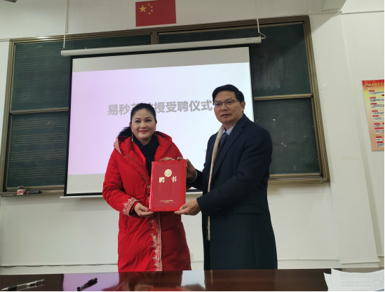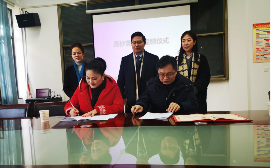 2020年12月30日,音乐学院在105会议室举行特聘教师签约仪式,聘任易秒英博士为学院特聘教师。校党委书记刘沛林、人事处处长许焰、学院领导班子及相关学科教师参加了签约仪式。许焰处长代表学校与易秒英博士签订特聘协议,刘沛林书记颁发聘书,并对易博士的加盟表示热烈欢迎,指出易博士受聘为音乐学院特聘教师,必将进一步推进音乐学院学科的发展及教学科研能力的提升。