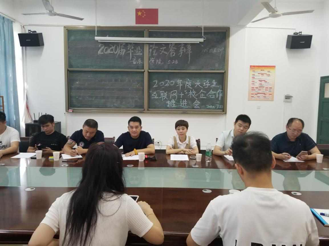 2020年7月22日上午,长沙学院音乐学院“2020年度大学生互联网+创新创业大赛校企合作推进会”在音乐学院会议室顺利召开。参加会议的有湖南恩舍传媒有限公司、湖南天保旅游管理有限公司、长沙漫优堂传播有限公司、湖南农业协会等企业、单位代表共11人,音乐学院党总支书记陈滨滨,实践教研室主任、“南楚韵.通道红”项目指导老师贺辉以及项目负责人、音乐学院大二学生宁李沛参加会议。