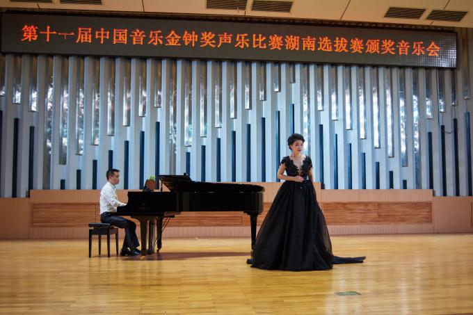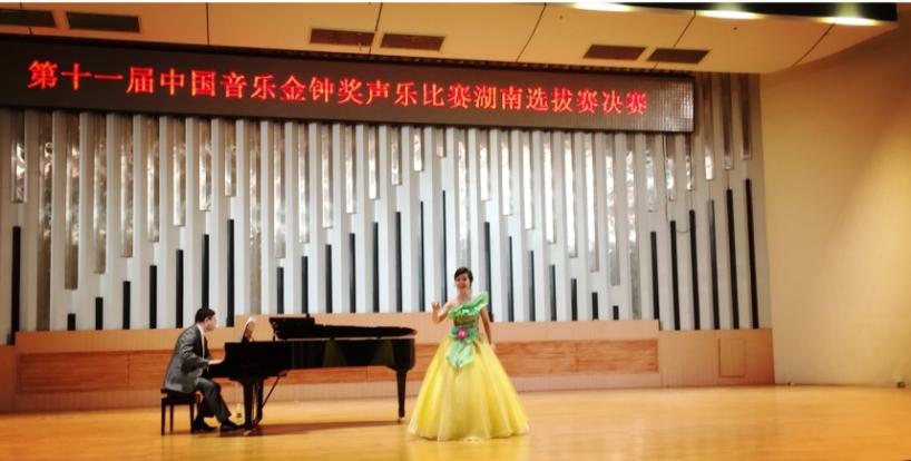 5月13日、14日,第11届中国音乐金钟奖声乐比赛湖南赛区选拔赛初赛、决赛在长沙举行。我校音乐学院伍珊妮、张瓅文两位青年教师参加了美声组、民族组的比赛,伍珊妮获得美声组金奖、张瓅文获得民族组铜奖。在14日晚举行的颁奖晚会上,伍珊妮应邀参加表演,其比赛录像将被选送中国音乐家协会参加全国的差额评选。