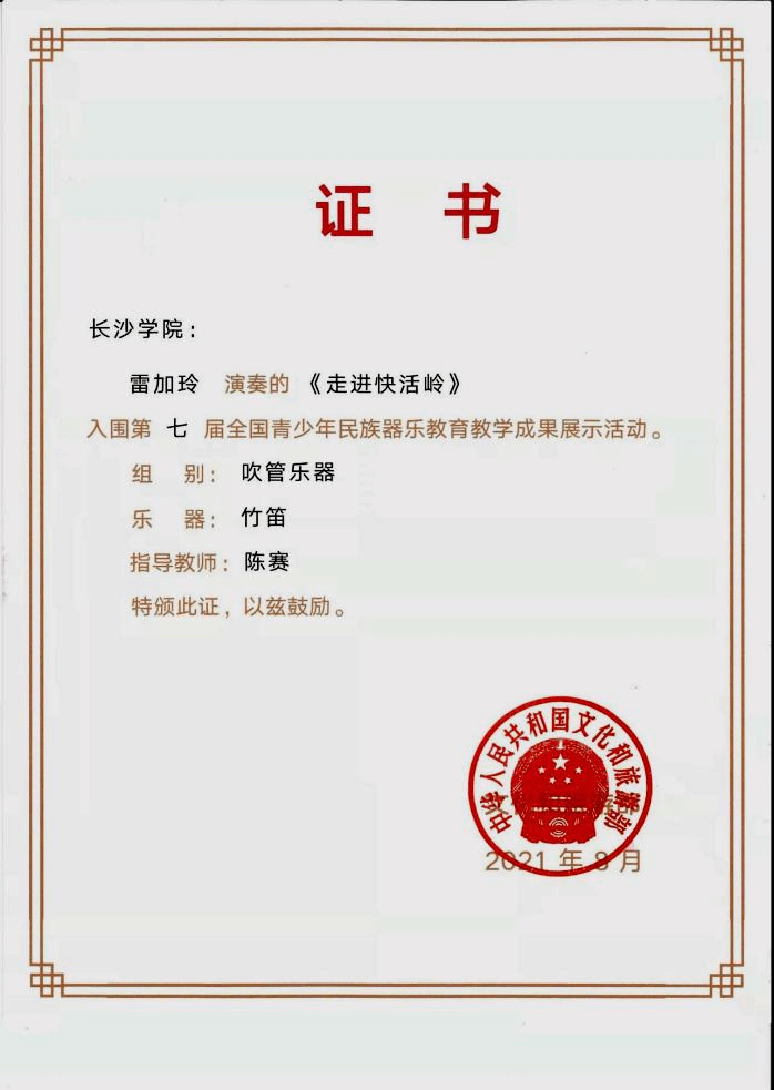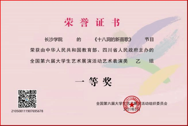 学生参加湖南省第五届大学生艺术展演荣获一等奖