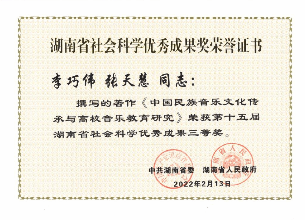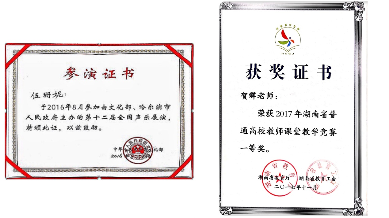 学院以打造国家级、省级教学成果奖为抓手,构建了“1336”实践教学体系。获国家级教学成果奖三等奖1项,省级教学成果奖一等奖2项、三等奖1项;全国高校青年教师教学竞赛二等奖1项、省级教学竞赛一等奖3项;获全国声乐、舞蹈展演4项、全国大学生艺术展演金奖1项,国家艺术基金项目3项;3门课程获评湖南省一流课程。