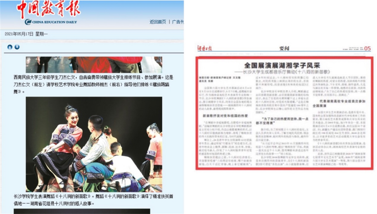 原创舞蹈作品《十八洞的新苗歌》受到中国教育报、湖南日报等媒体广泛报道