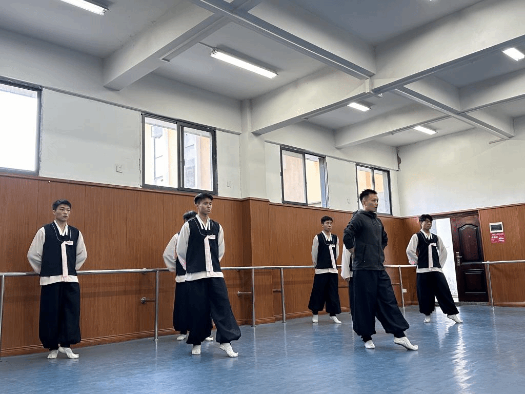 教师温佐亮为2021级学生讲授课程《中国民族民间舞(四)》,课堂从复习教学组合开始,着重强调学生基本体态与呼吸的配合,进而开展了古格里步伐基本动作的教学。教师通过示范、讲解、提问的方式将平步、滑步等内容传递给了学生,整个教学过程层次清晰,效果显著。