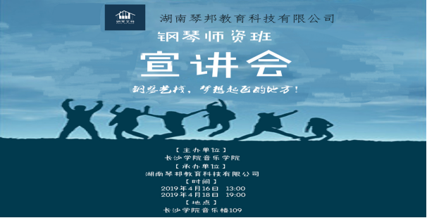 2019年4月16日下午,长沙学院音乐学院与湖南琴邦教育科技有限公司签约的校企合作项目——“钢琴艺栈”少儿钢琴师资班2019年宣讲会在音乐楼实训教室109召开。音乐学院院长刘淮保、副院长谢萍、党总支书记陈滨滨、党总支副书记符勤出席并讲话。会议由湖南琴邦教育科技有限责任公司项目负责人刘璟琨主持。