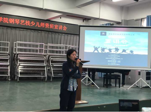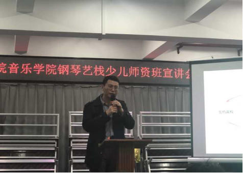 曾小海老师在宣讲会上对项目背景,运作模式做了补充说明,为同学们描绘了一幅美好的就业蓝图。“钢琴艺栈”项目利用独创的模块化钢琴教学课程体系培养音乐类高校的学生成为合格的少儿钢琴教师。培训合格的教师签约钢琴艺栈,成为签约师资会员。让参训学生做到未毕业,先就业,一毕业,拿高薪的目标,深受同学们的欢迎。
