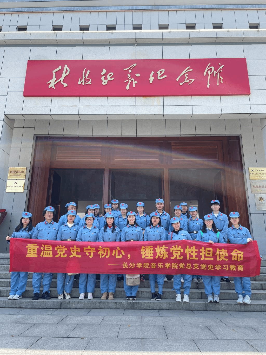 3月28日,长沙学院音乐学院二级中心组成员和师生党员沿着毛泽东、胡耀邦等革命先烈在浏阳的足迹,到浏阳文家市秋收起义纪念馆、胡耀邦故居,开展“学史明理”教育活动。通过缅怀革命先烈、重温入党誓词、聆听红色故事,接受党史教育,初心洗礼。