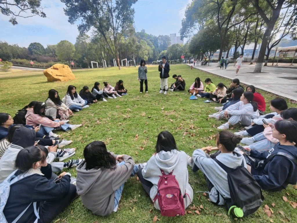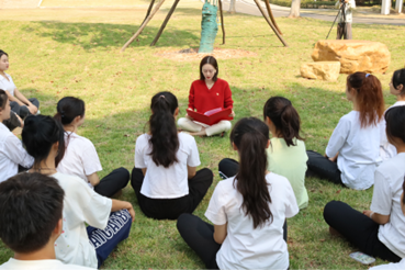 党总支副书记傅诗贻带领音乐学子们,以“数”读二十大的方式,一同学习了党的二十大报告的基本内容,了解了新时代十年的伟大变革。期间,22音乐1班围坐在草坪上,动容之处,起身欢唱。“前进吧,亲爱的同志们!前进吧,中国共产党......”歌词慷慨激昂、铿锵有力,令人振奋,同学们齐声高歌,歌声嘹亮,阵阵乐声响彻在长大校园中。