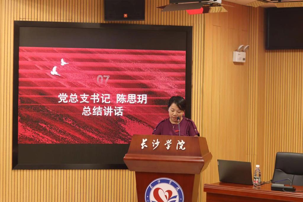 随后,党总支书记陈思玥总结讲话。她再次向同学们表达诚挚的欢迎和真心的祝福,对同学们在军训期间的表现予以充分肯定,并激励大家在日后的学习生活中坚定理想信念,做民族复兴的追梦人;践行长大精神,做强国有我的实干者;磨砺个人品格,做快乐成长的新青年。