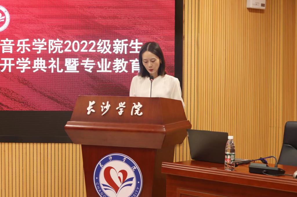 9月20日下午,音乐学院2022级新生开学典礼暨专业教育在新图书馆一楼学术报告厅举行。音乐学院党总支书记陈思玥、院长李巧伟、副院长谢萍、副院长刘小标、副书记傅诗贻、教授代表、各教研室主任,2022级各班班主任、全体辅导员、新生班导班助以及2022级全体新生共同出席本次典礼。开学典礼由副书记傅诗贻主持。