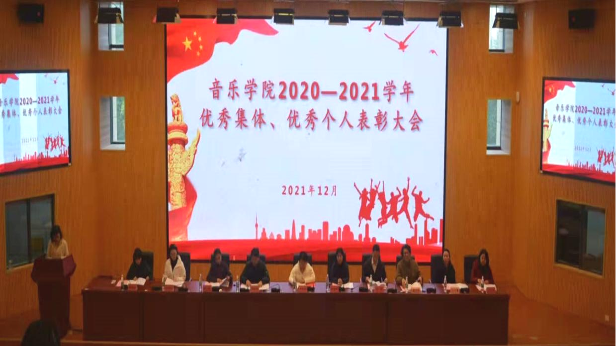 为落实立德树人的根本任务,践行三全育人培育体系,营造良好的学习氛围,推动优良学风建设,激发同学们积极向上的精神,音乐学院于12月14日下午13:30在图书馆二楼学术报告厅举行“音乐学院2020—2021学年优秀集体、优秀个人表彰大会”。音乐学院党总支书记陈思玥、院长李巧伟、副院长谢萍、刘小标、各教研室主任、辅导员及2020级、2021级学生参与此次表彰大会。此次大会由党总支副书记刘静主持。