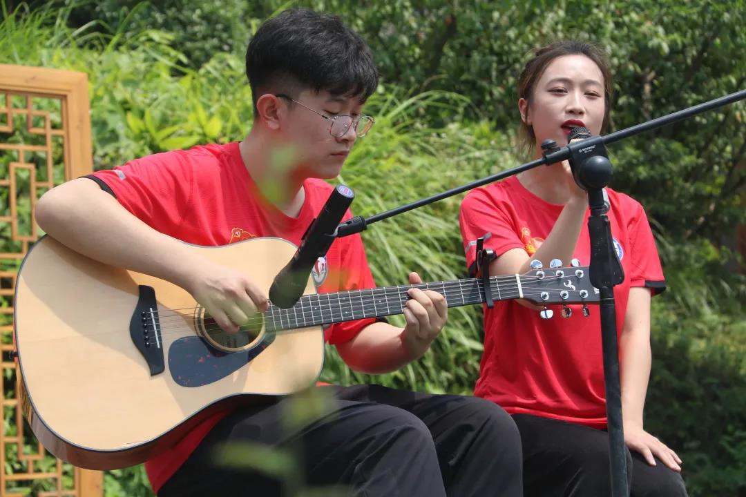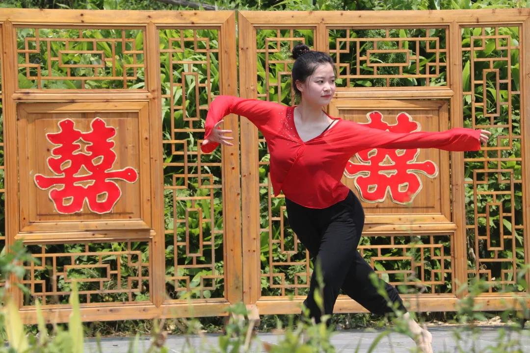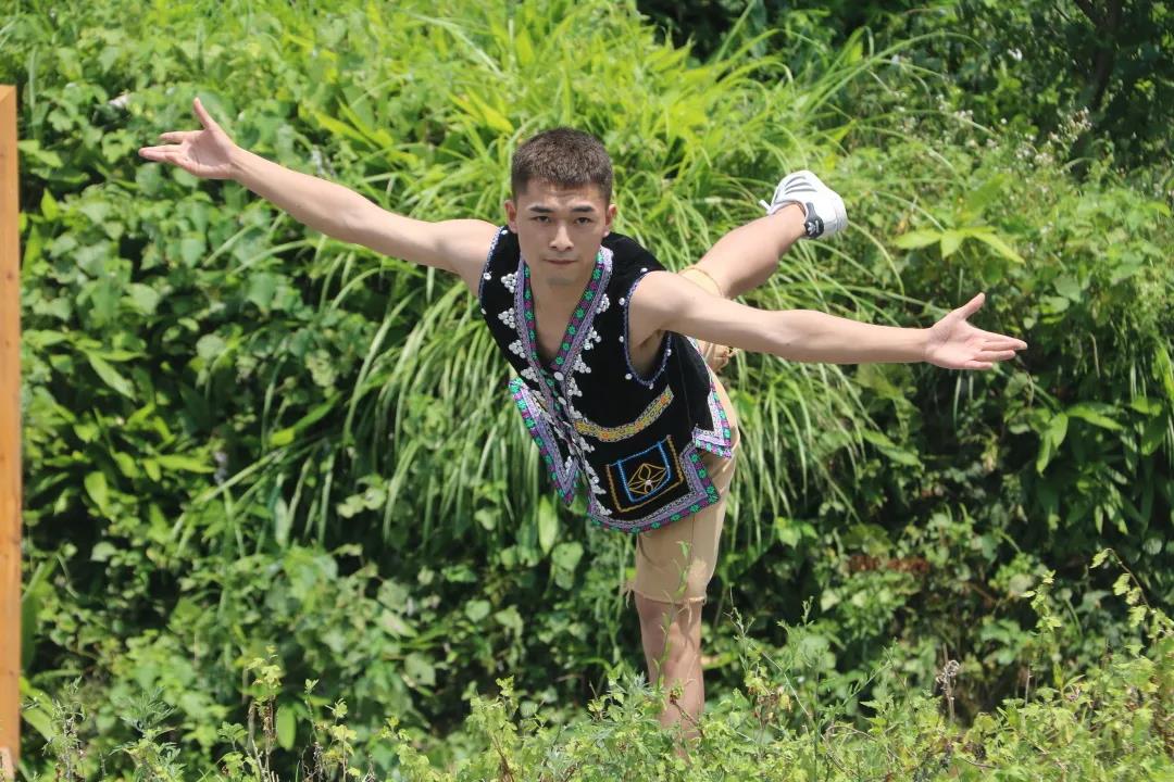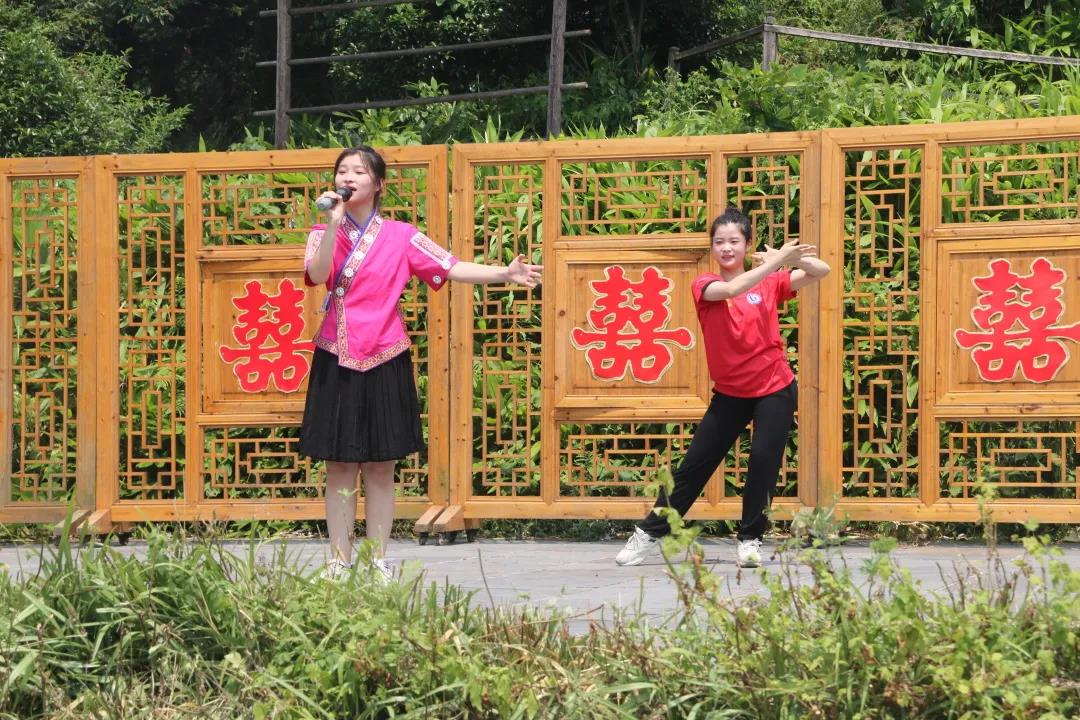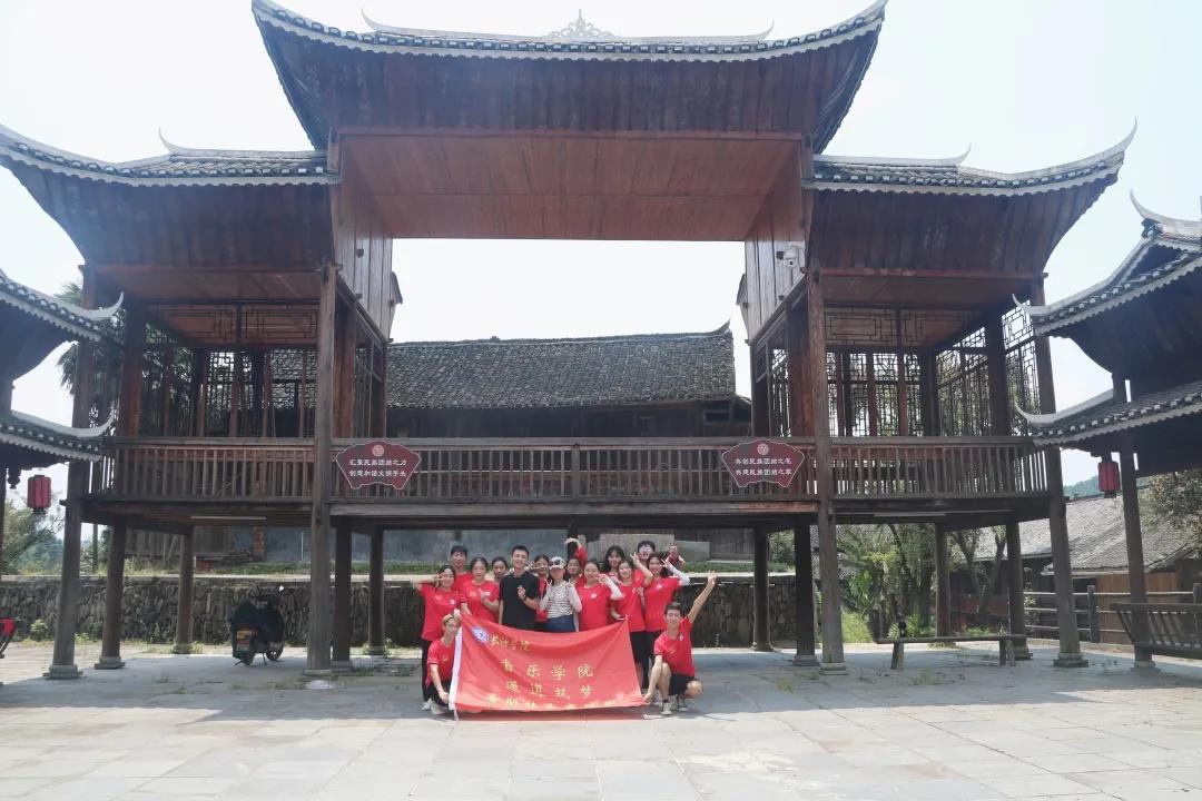 清江一曲抱村流,长夏江村事事幽。在这草长莺飞、蝉声阵阵的日子里,我们迎来了最终演出。顺着侗寨一路向上,我们在古侗寨最高点的龙脉广场进行表演。此前,同学们在村寨的活动中心广场,顶着烈日,趁着实践中间休息时间进行节目排练,引得村民们驻足观看。