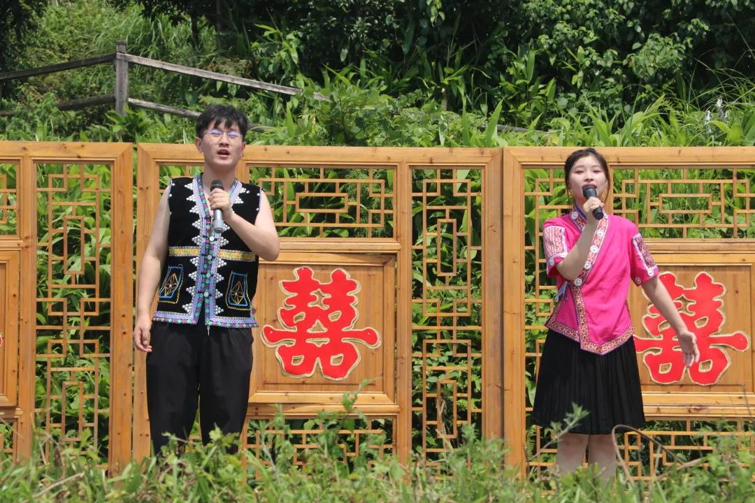 最后以一首侗语版《唱支山歌给党听》+《没有共产党就没有新中国》结束,在村寨中近10天的生活里,同学们向村民们学侗语、唱侗歌,并将其融入合唱表演。演出过后,侗寨演艺部负责人杨光合老师评价道,“同学们的演出让整个侗寨有了青春的气息,体现了非常好的专业素养。”