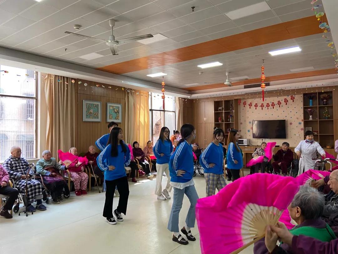 现场,同学们陪伴在老人身旁倾听老人诉说,耐心与老人们交谈,每位志愿者都尽自己最大的努力为老人们带来温暖,同时也为他们带来了精彩的表演。同学们用自己嘹亮、充满朝气和感情的歌声演唱了《祖国不会忘记》、没有共产党就没有新中国》等经典红歌,用歌声唱响心中的激荡,用歌声表达对党最诚挚的爱。