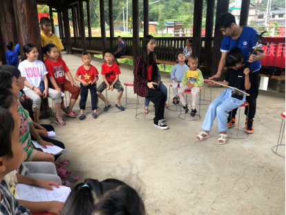 在岭南村,通过前两天的接触,孩子们越来越喜欢我们的课堂。进行相应复习后,我们以演奏乐器的方式,激起孩子们对二胡的兴趣,给孩子们近距离展示了二胡的构造原理以及各种细节,并教授孩子们一些简单的二胡曲目。同时,我们也将简谱歌曲学习再度精化,使孩子们能够看简谱就能唱出对应的唱名。最后临近离别孩子们一拥而上都抱着我们,或许希望离别亦再见!